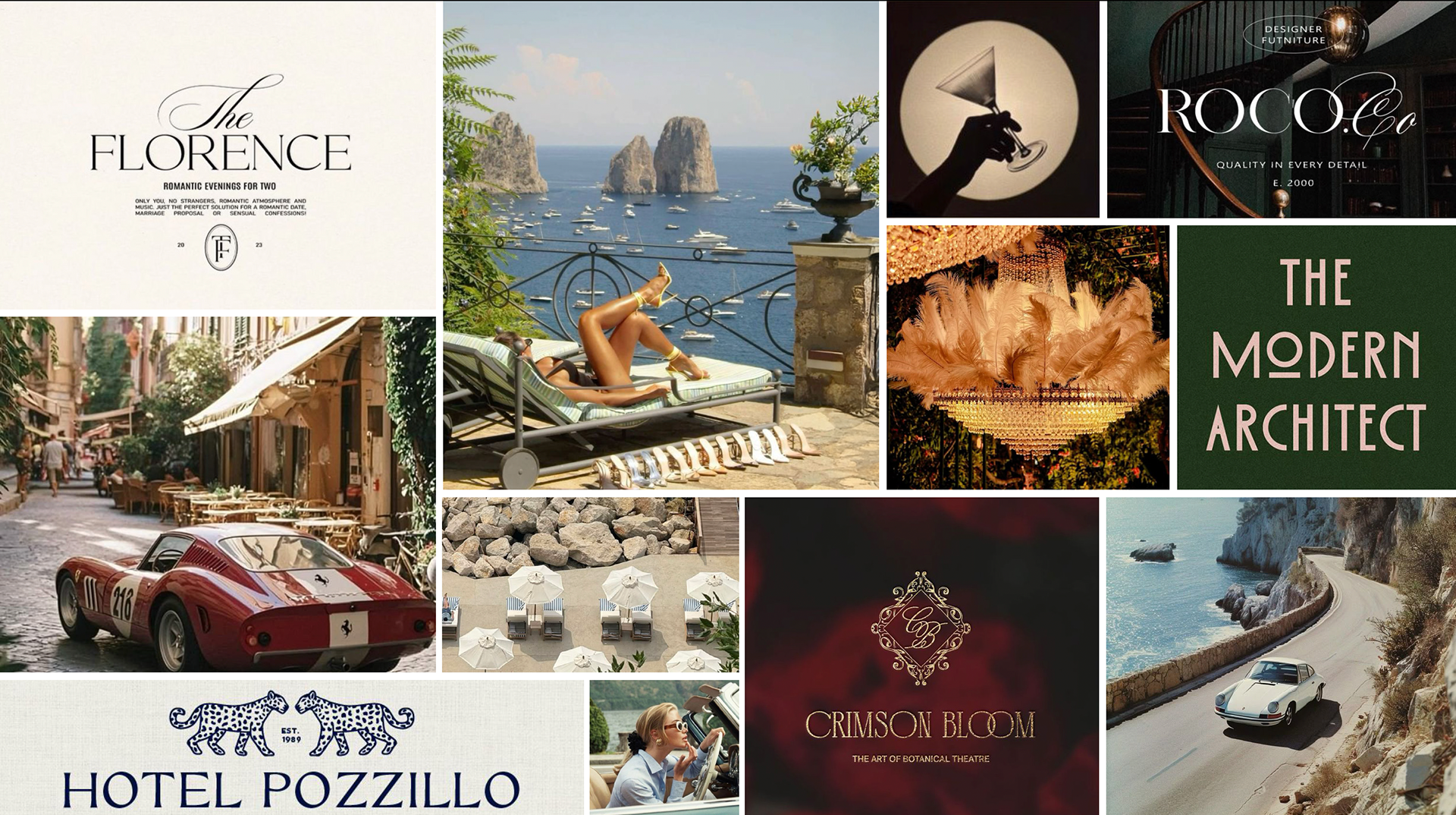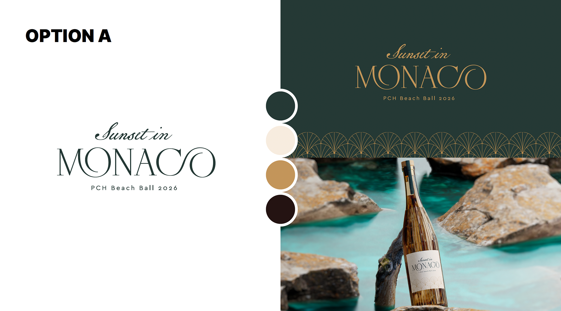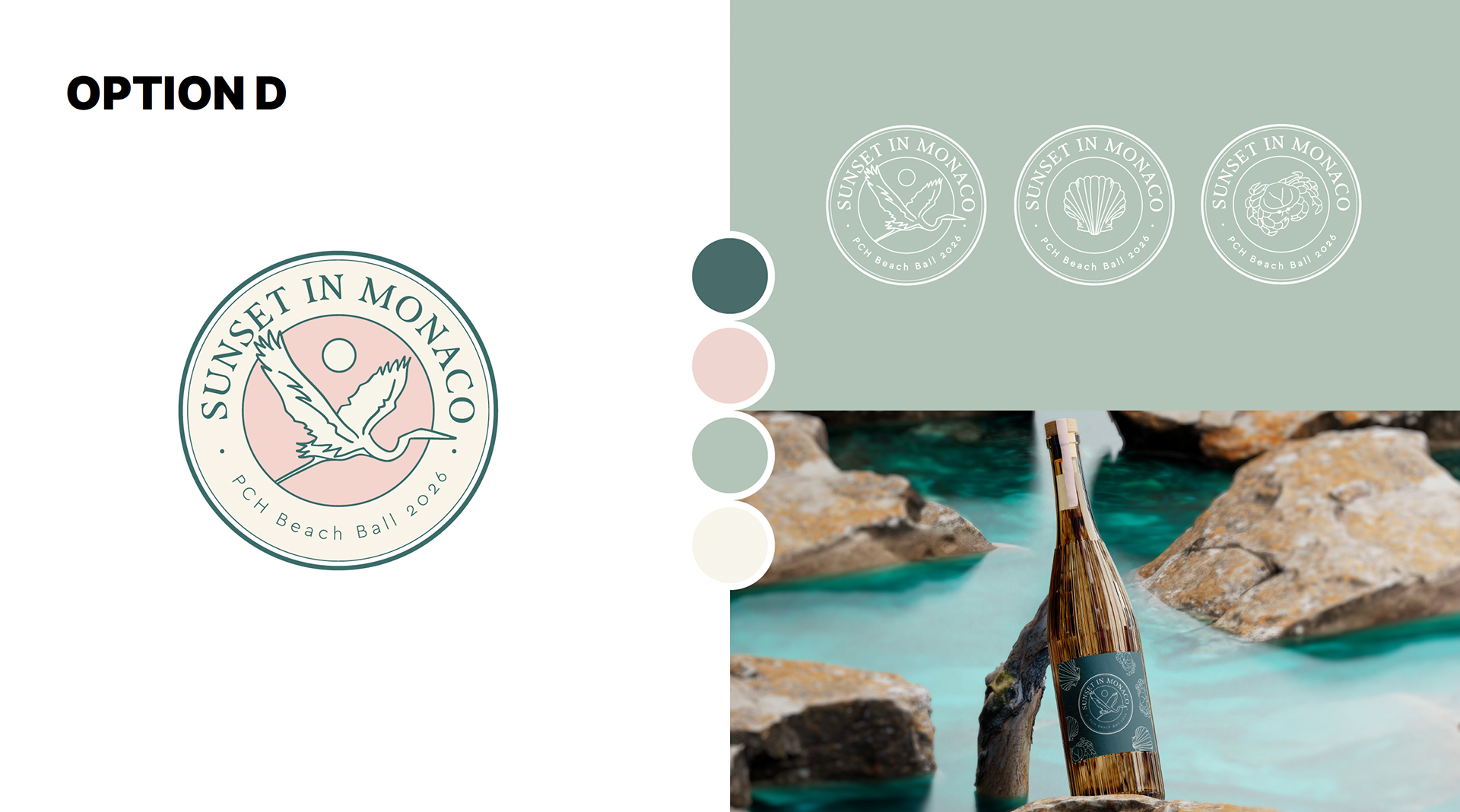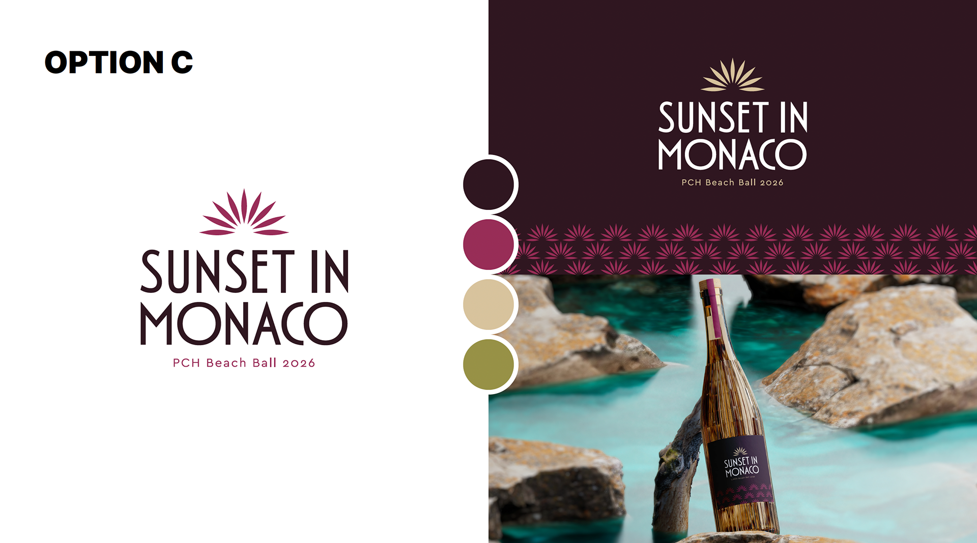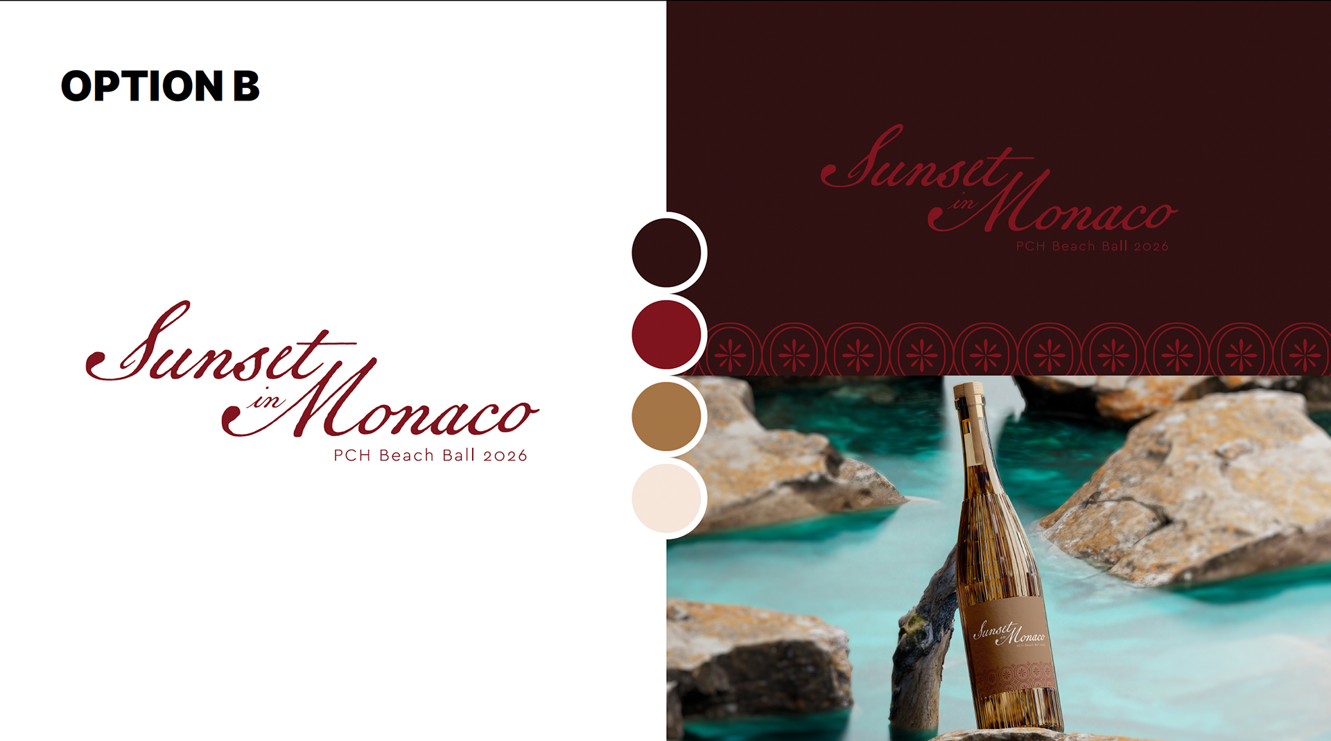 a brand identity inspired by the theme “Sunset in Monaco.” The goal was to capture an elevated blend